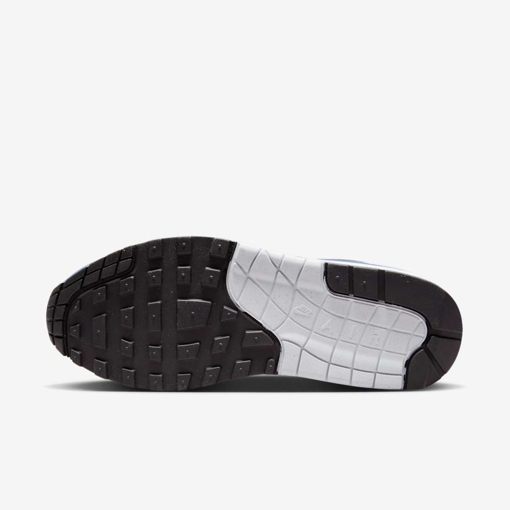 The Nike Air Max 1 “Deep Royal Blue” (FD9082-100) blends a crisp white and light grey mesh upper with rich royal blue suede mudguards and lining. Black Swooshes and outsole details add a sharp contrast, while a classic polyurethane midsole and visible Air unit in the heel deliver the timeless comfort fans expect.