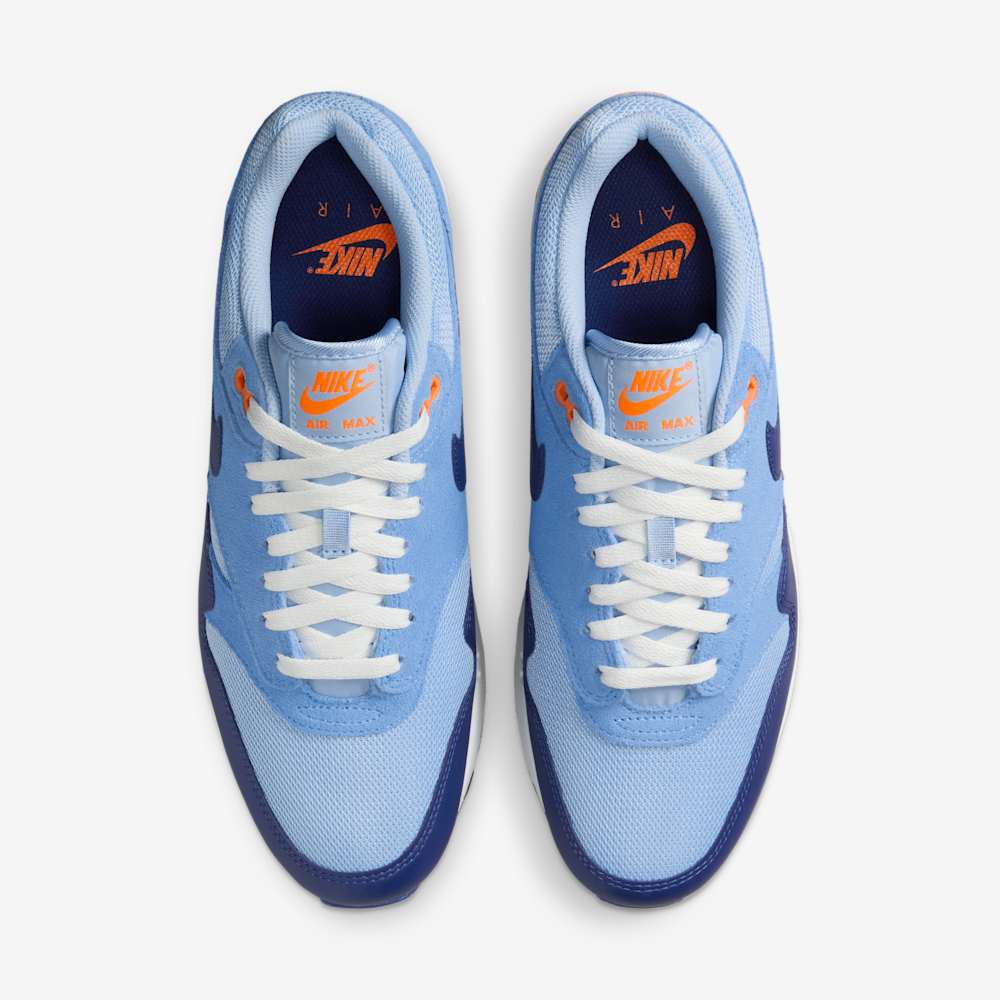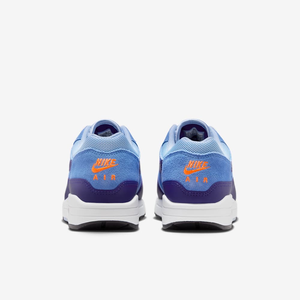 The upper is crafted from a mix of suede, mesh and synthetic overlays, offering durability, breathability and a premium feel. The Psychic Blue accents highlight the classic panel structure of the Air Max 1, giving the shoe a cool, airy aesthetic that stands out without being overpowering.