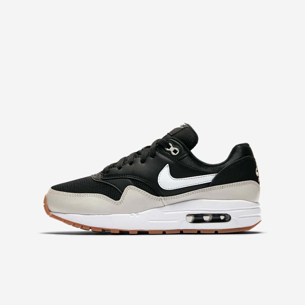 The Nike Air Max 1 GS “Black Light Bone” (807602-011) updates the classic Air Max 1 silhouette for grade-school sizes with a clean, versatile palette. Constructed with premium materials, the shoe features the iconic visible Air unit for responsive cushioning, a supportive midsole, and a durable rubber outsole for everyday wear.
