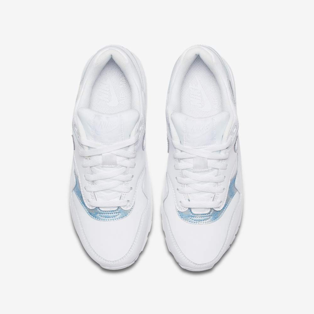The delivers a clean and timeless take on the iconic Air Max 1 silhouette, designed specifically for grade-school sizes. Featuring a crisp white upper with subtle Royal Tint accents, this sneaker offers a fresh and versatile look suitable for everyday wear.