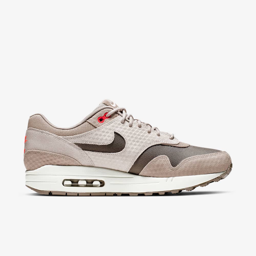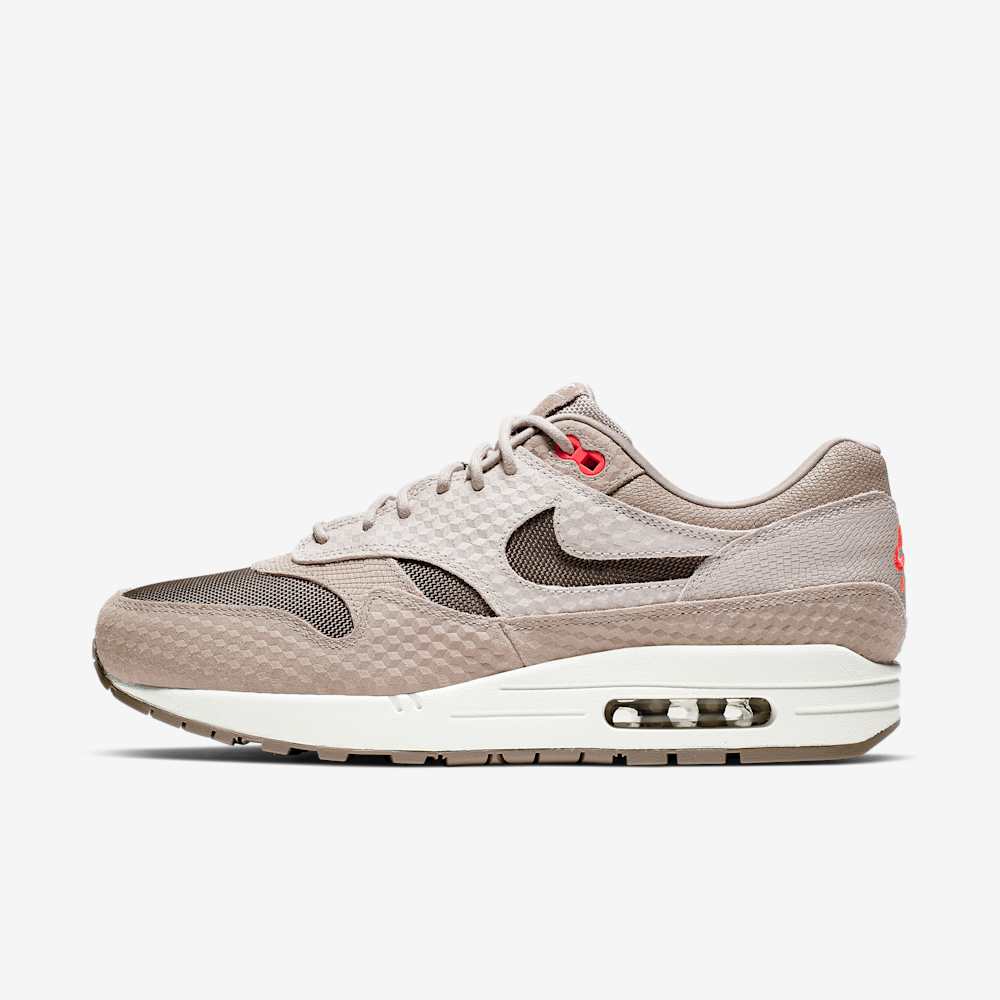 The Nike Air Max 1 Premium “Moon Particle” (style code 875844-205), released on May 2, 2019, is a distinguished edition of the classic Air Max 1 silhouette. This model features a sophisticated blend of earthy tones, including Moon Particle, Ridgerock, and Sepia Stone, giving it a refined and versatile aesthetic.