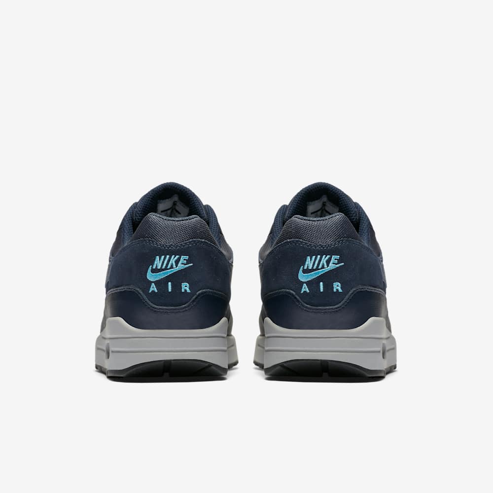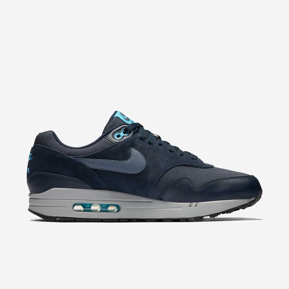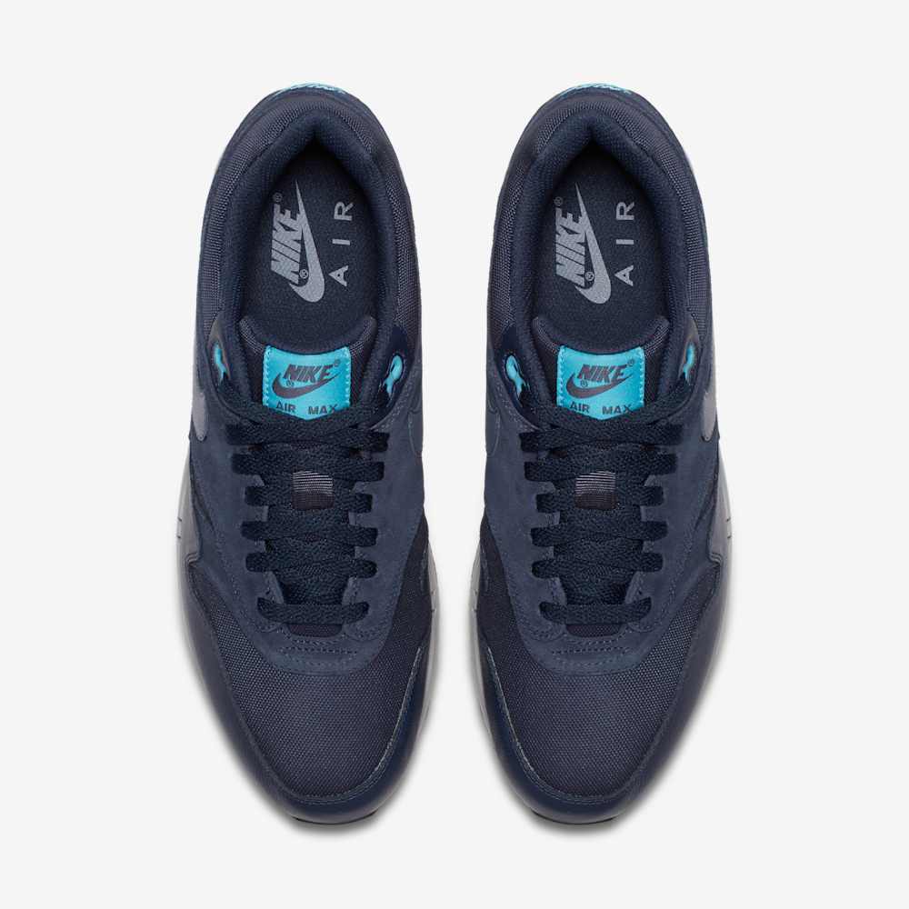 The Nike Air Max 1 “Obsidian” (875844‑401) is a premium monochromatic edition of the classic 1987 silhouette, released on August 1, 2017. This colorway adopts a rich, deep Obsidian black palette across its upper, which combines mesh and suede materials to deliver a sleek and restrained aesthetic.