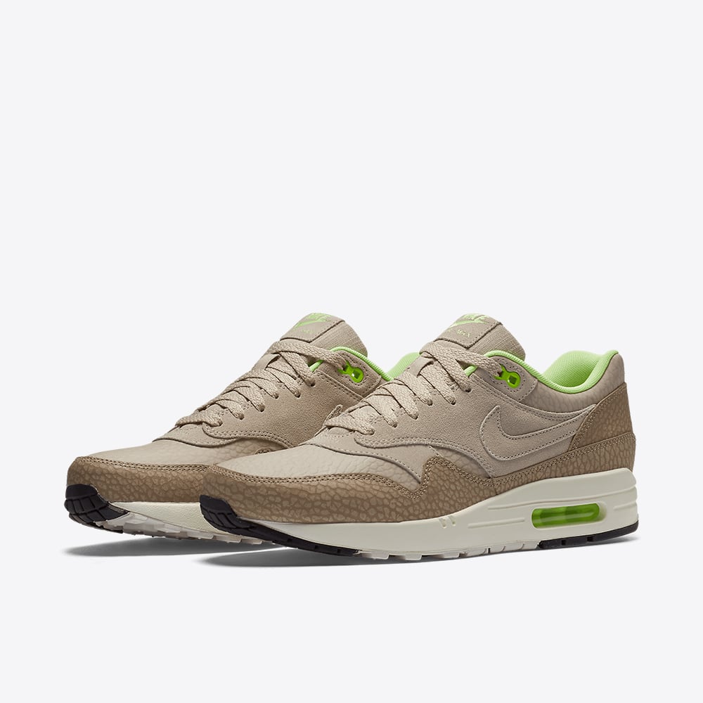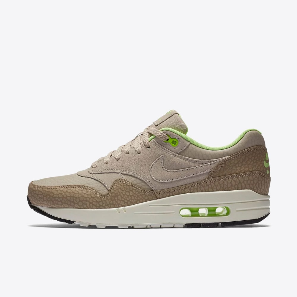 The Nike Air Max 1 Premium “Safari String” redefines the classic Air Max 1 silhouette with a wilderness‑inspired aesthetic, blending rugged materials and a muted earthy palette for a lifestyle‑ready sneaker. The upper combines desert‑tone suède and leather overlays with a breathable mesh base, delivering a tactile contrast and a distinctive “string/desert camo/ghost green” colorway that evokes a subtle safari vibe.