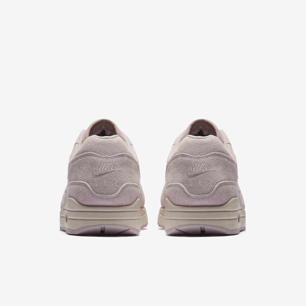 The Nike Air Max 1 Premium SC “Jewel Particle Rose”, style code 918354-601, debuted on February 2, 2018, at a retail price of US$ 140. This premium edition, part of Nike’s celebrated “Jewel” line, is dressed in a refined Particle Rose / Metallic Gold / Desert Sand colorway. The upper combines soft suede overlays with breathable mesh underlays, giving the sneaker a luxurious yet versatile appeal.