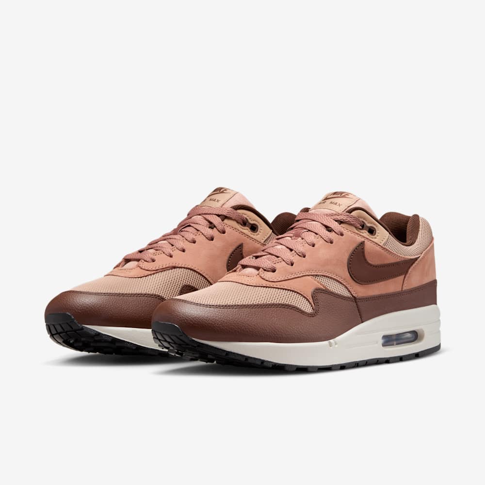 tep into timeless style and earthy elegance with the Nike Air Max 1 SC ‘Cacao Wow’. This premium iteration of the iconic silhouette blends natural tones with luxurious materials for a refined take on the streetwear staple. The upper combines a breathable hemp mesh base with rich suede overlays in Dusted Clay and a standout mudguard and Swoosh in pebbled Cacao Wow leather. Subtle branding hits on the tongue and heel in Light Orewood Brown elevate the visual appeal.