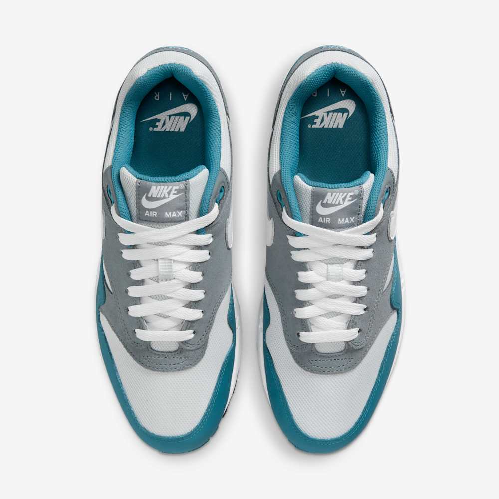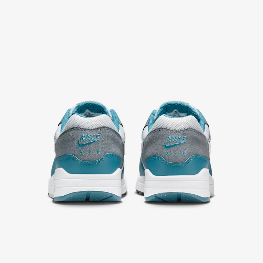Blending heritage design with refreshing color accents, the Nike Air Max 1 SC ‘Noise Aqua’ breathes new life into a legendary silhouette. This modern take on the classic 1987 Air Max 1 features a clean white mesh upper, overlaid with soft grey suede panels for subtle depth and texture. The standout element is the wavy mudguard and heel branding, both rendered in vibrant Noise Aqua, injecting the sneaker with an energetic, coastal vibe. A crisp white midsole houses the signature visible Air unit in the heel, offering both timeless style and cushioned comfort. Finished with a durable rubber outsole and Cool Grey Swooshes, this pair is a perfect blend of retro flair and contemporary color blocking — ideal for everyday wear or making a low-key statement.