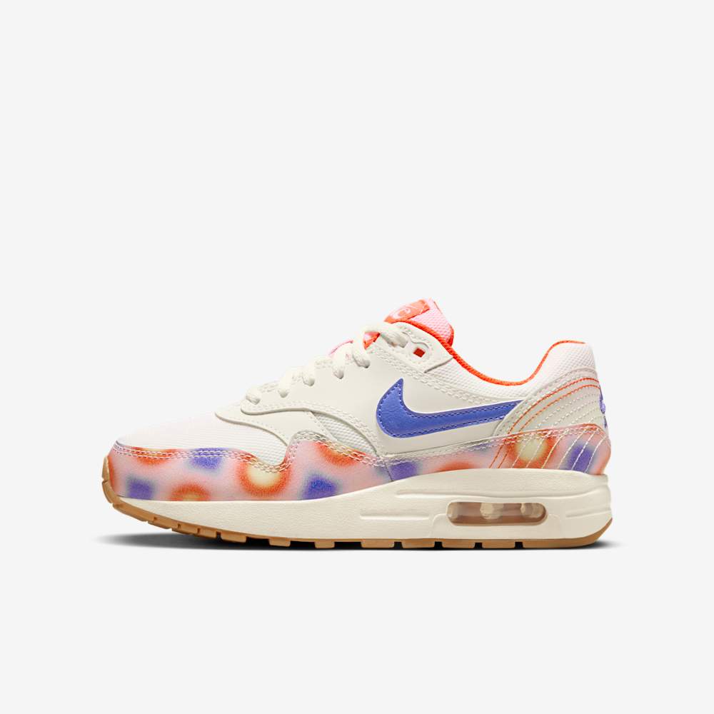 The Nike Air Max 1 SE GS “Everything You Need” delivers a fresh twist on a classic silhouette with an uplifting message for the next generation. Designed in a vibrant mix of Sail, Blue Joy, Safety Orange, and Football Grey, this kids-exclusive release blends retro aesthetics with bold, modern styling.