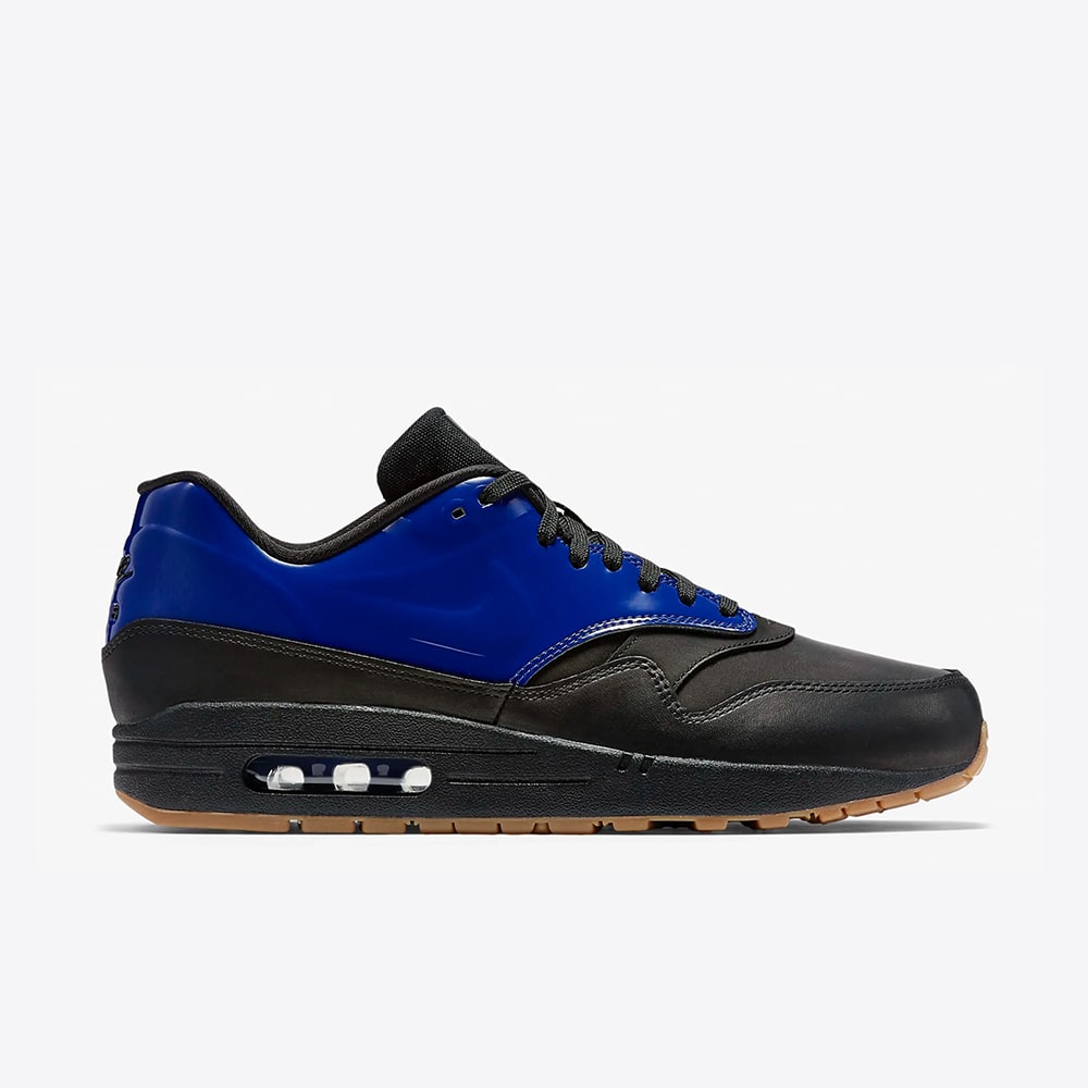 The Nike Air Max 1 VT QS “Royal Blue” (831113-400) brings a fresh, modern edge to the classic Air Max 1 silhouette through Nike’s Vac-Tech build — a smooth, molded upper that delivers a clean, stitch-free look. The shoe’s upper is dressed in a bold Deep Royal Blue patent-style leather, contrasted by a black midsole, gum outsole and subtle black lining. This creates a sleek, street-ready aesthetic that balances bold color with understated design elements.