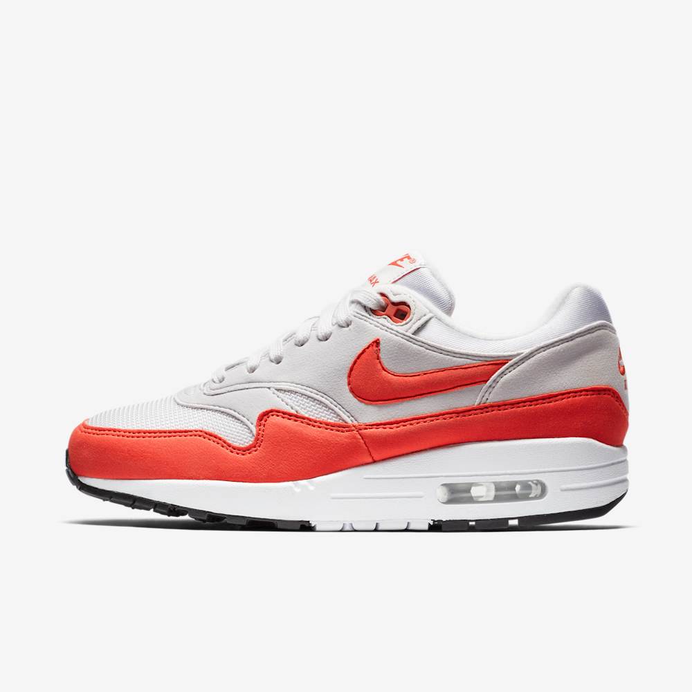 The Nike WMNS Air Max 1 “Habanero Red” (style code 319986-035) is a vibrant women’s edition of the iconic Air Max 1 silhouette. Featuring a striking Habanero Red hue on the mudguard, Swoosh, and eyelets, this sneaker stands out against its neutral Vast Grey base. Crafted with a combination of mesh and nubuck materials, it offers both comfort and durability. The visible Air Max unit in the heel provides responsive cushioning, making it suitable for everyday wear.Released on March 28, 2018, at a retail price of $110 USD, this model remains a sought-after piece for sneaker enthusiasts.