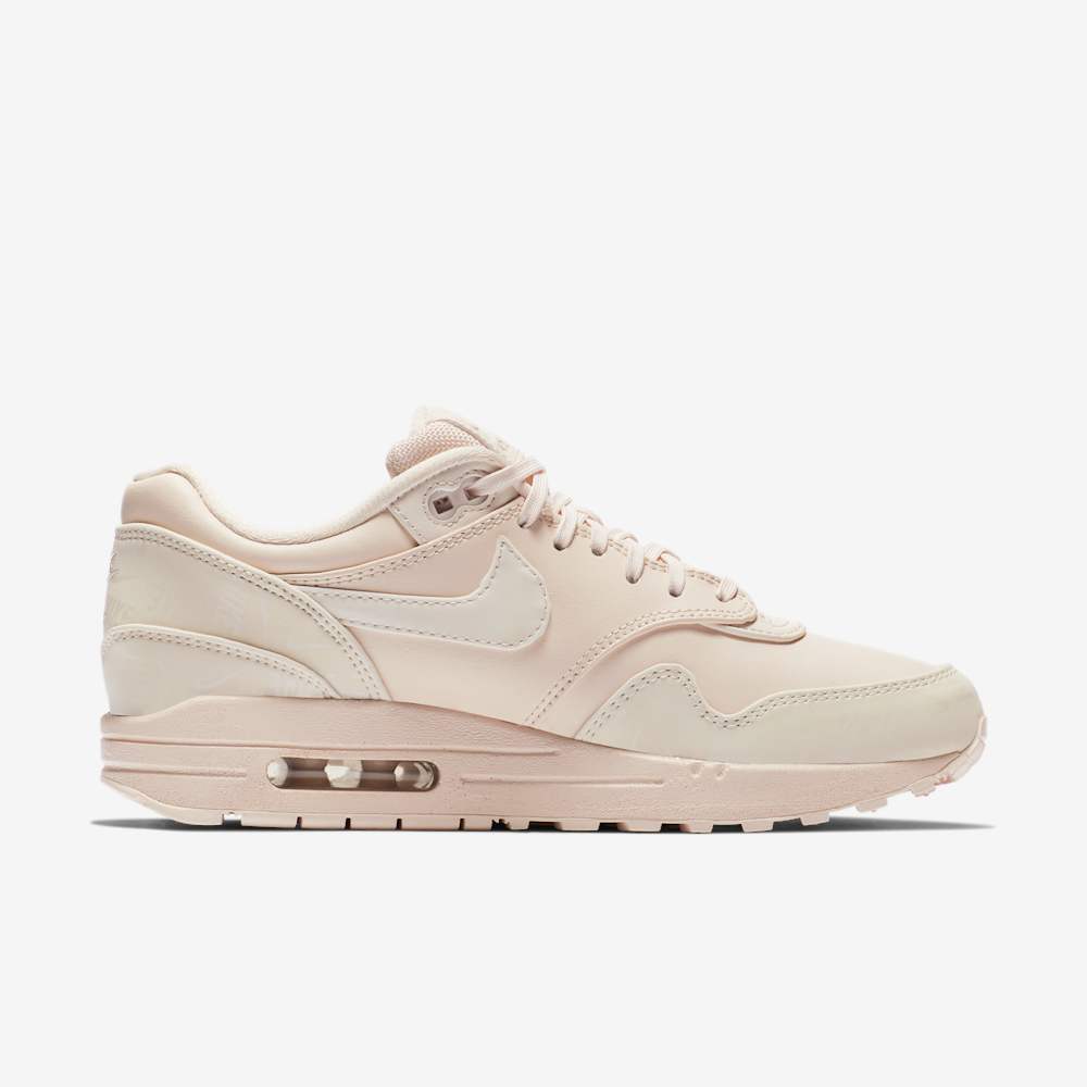 The Nike WMNS Air Max 1 LX “Guava Ice” (style code: 917691-801) is a women’s-exclusive release that debuted on September 26, 2018. This iteration of the iconic Air Max 1 features a premium leather upper in a soft, light pink hue reminiscent of guava. The entire shoe is executed in this color, including the upper, midsole, and rubber outsole. A standout feature is the glow-in-the-dark effect on the Swoosh, mudguard, and heel, revealing an all-over print when illuminated in the dark.
