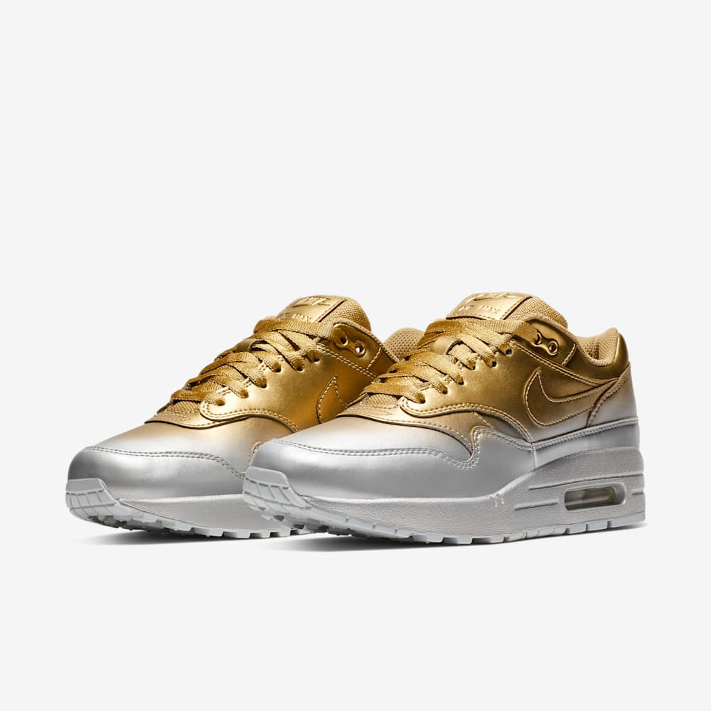 Underfoot the model retains the signature Air Max 1 tooling with a cushioned midsole and visible Air unit in the heel, offering everyday comfort and the silhouette’s heritage ride. Originally retailing at US$ 140, this LX metallic release is aimed at lifestyle wearers and collectors who value elevated materials and subtle shine. Now primarily found on resale platforms, the pair often commands a premium over its original price.