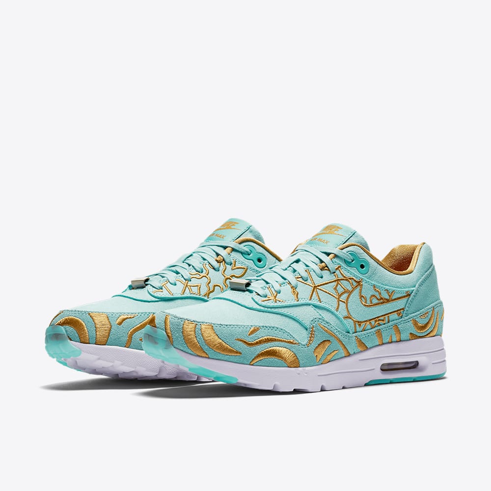 The Nike WMNS Air Max 1 Ultra LOTC QS “Paris” (Green/Gold) is the boldest interpretation of the city within the pack. Featuring a turquoise upper with golden floral embroidery, it reflects Shanghai’s vibrancy and cultural depth. The striking color combination makes this one of the most eye-catching pairs in the collection.